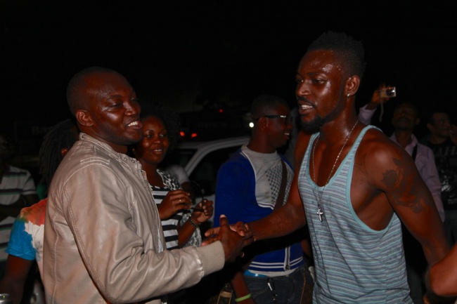 - Yaa Pono shakes hand with fellow label mates Fokn Bois during performance at Big in Ghana 2012