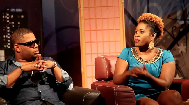 - Lydia Forson and Ghanaian rapper D-Black on set at Metro TV Studio in Accra, Ghana