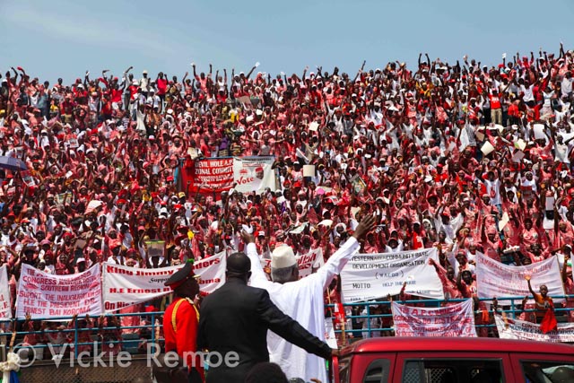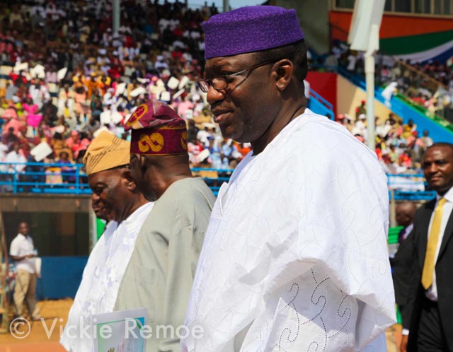 When Sierra Leone’s president pulled into the national stadium in a red half back SUV the crowd though smaller than his first inauguration roared. They had been waiting for 4 months for this moment. President Koroma was re-elected for 5 more years back in November. There were security concerns with some worrying that the election would turn violent. However this was not the case. The elections came and went with no major incident. Observers said it was free and fair. The international community was shocked. Those who have been in country since the 2007 elections weren’t. Sierra Leone has turned a curve and it was under the leadership of President Koroma. Often accused of being too “nice” he delivered on many of the promises he made in his first term.