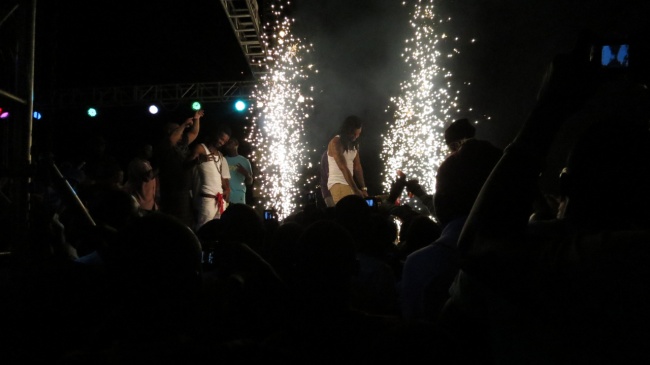 Then Cassidy from America took over the performance and did two of his songs “I’m a hustler” and “Hotel”. Finally L A took to the stage dressed in Sierra Leone’s national football jersey with Mohamed Kallon’s name on his back. After performing two of his songs, he was then given the captain band which he said makes him the captain of Sierra Leone’s music. The fans cheered “Capay!” “Capay!”, (which means captain in Krio). L A performed alongside K-Man and was later joined by Chubby Asa.