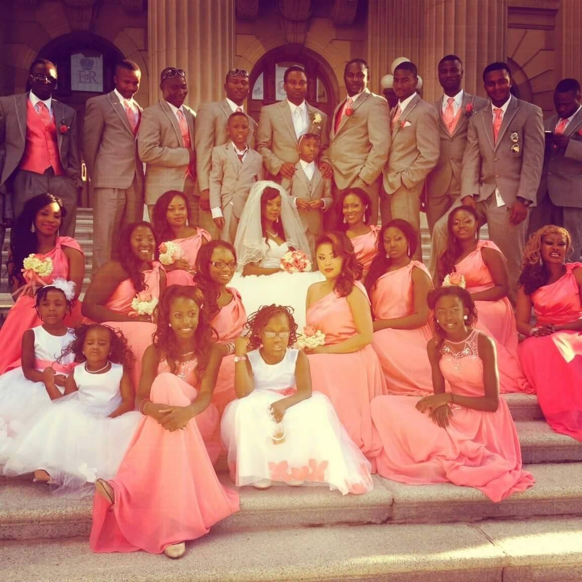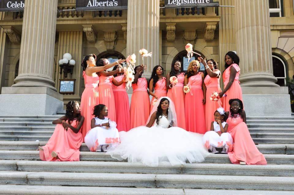Sarran and Emmanuel met in Edmonton, in Alberta, Canada. They dated for 7yrs before they finally decided to walk down the aisle. The wedding was held at the Palace Banquet Hall in Edmonton. Coral and grey were the the colors for this lovely summer wedding. Sarran and Emmanuel were both born in Sierra Leone, although Emmanuel’s parents are originally from Ghana. This is the Sierra Leonean wedding of Sarran and Emmanuel Nunoo.