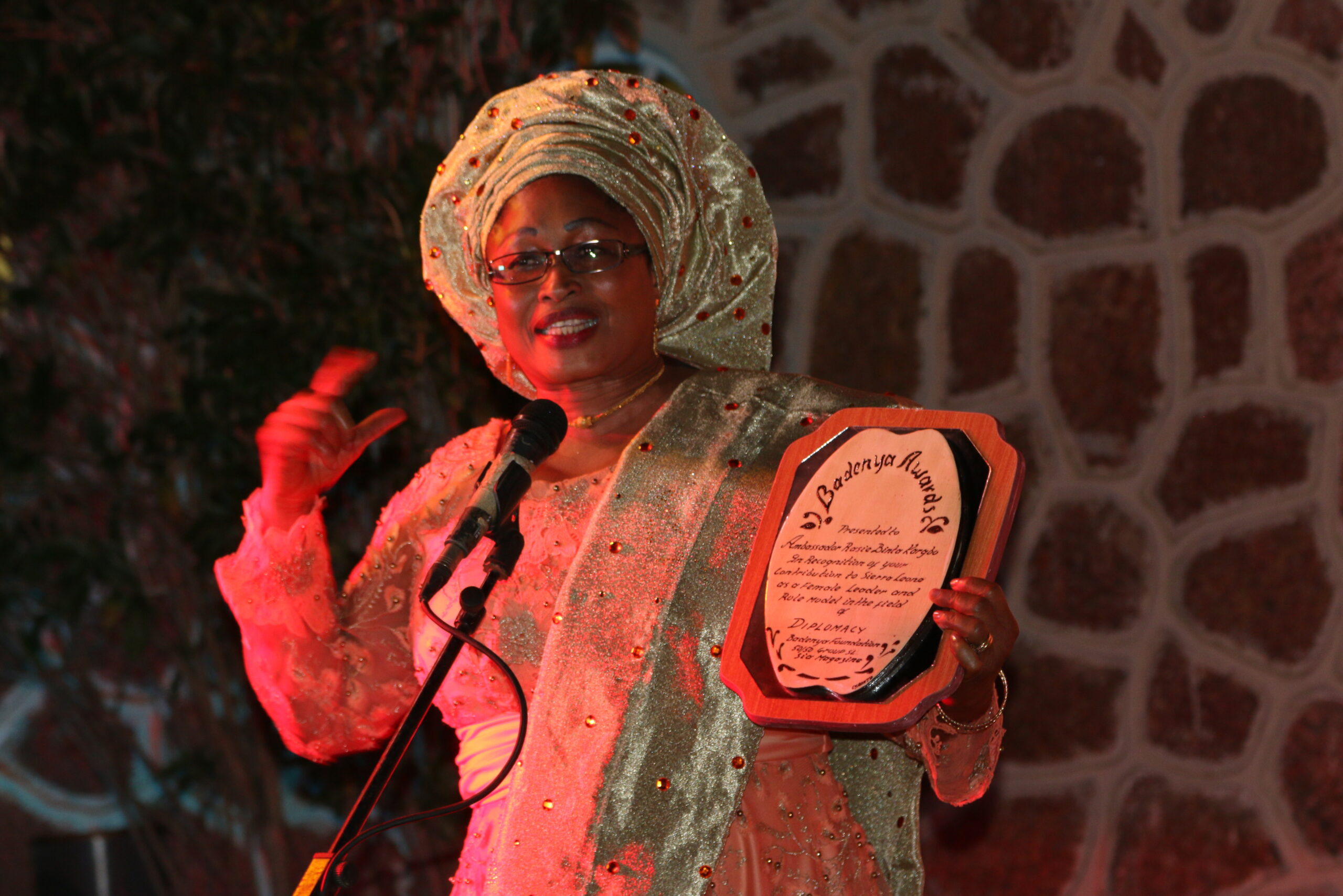 Those awarded and recognized include; Ms. Yvonne Aki-Sawyerr for entrepreneurship, Mrs. Asma James for radio journalism, Ms. Hawa Kamara for representing Sierra Leone and emerging as a culture ambassador, Ms. Natasha Beckley of IAM-SL Pageant Agency, Dr. Slyvia Olayinka Blyden, Minister of Social Welfare Gender and Children Affairs, and Ambassador Rasie Binta Kargbo.