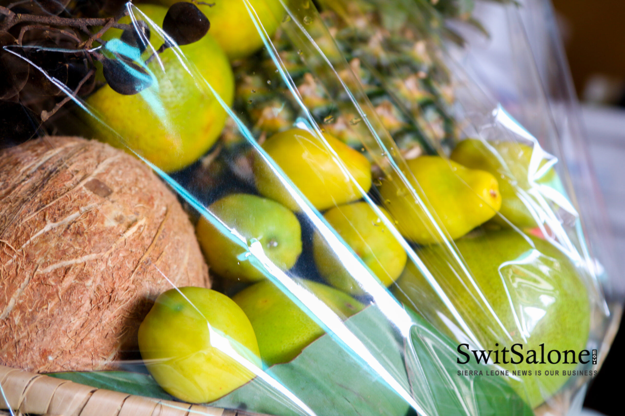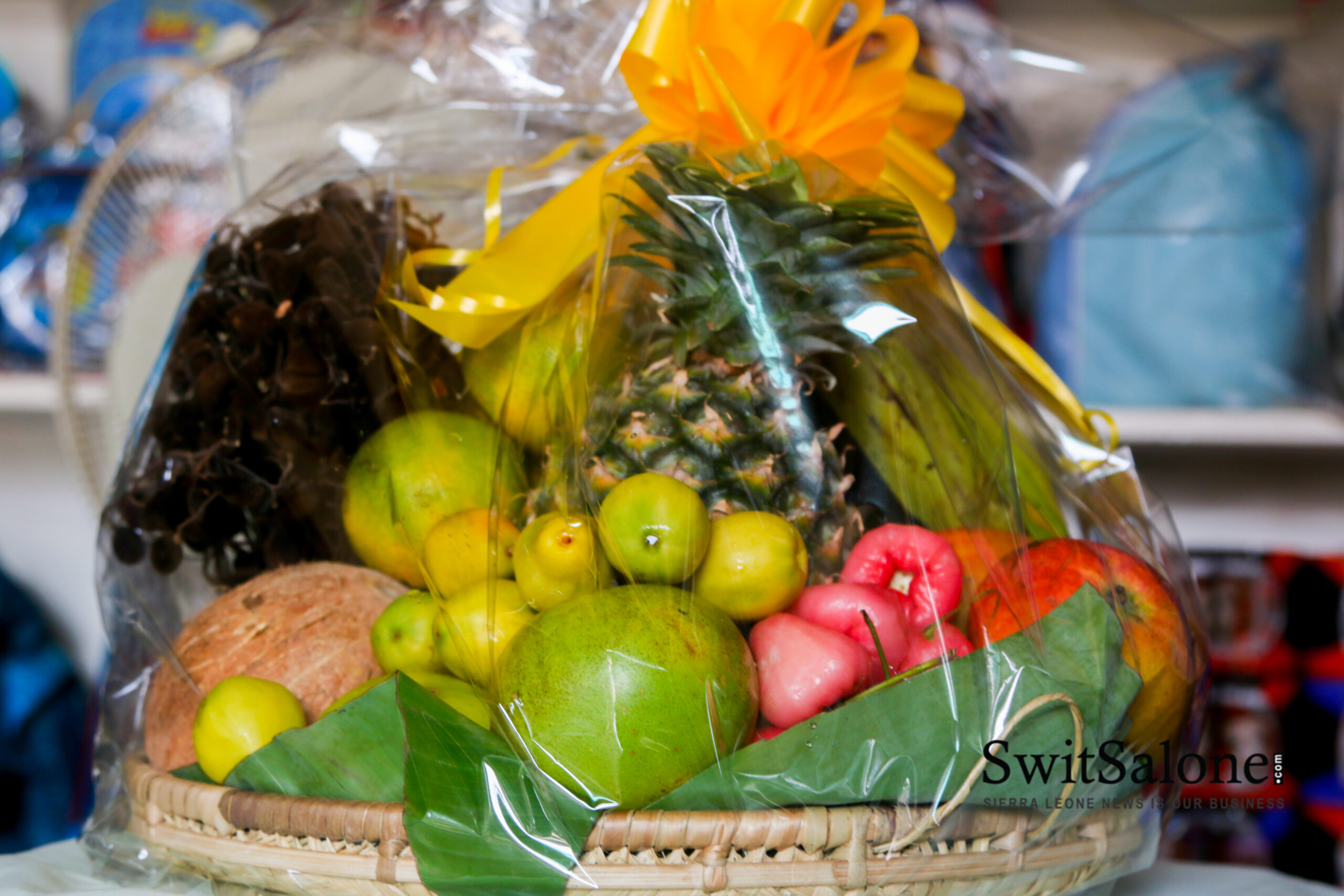 Even though most of the gift items include the usuals like perfumes, and chocolates; her stand out product is her local calabash fresh gift basket. She buys the fanners in bulk and then uses banana leaves for the base and the sides. She sources the fruits and vegetables from Regent, Grafton, Leicester and other communities in rural Western Area. The baskets are truly original and unapologetically Sierra Leonean, with fruits such as malombo, kushu, carambola (star fruit), tombi (tamarind) and other rare and local favorites. The calabash baskets also come loaded with traditional snacks like coconut cake, benni (sesame) cake and congu.
