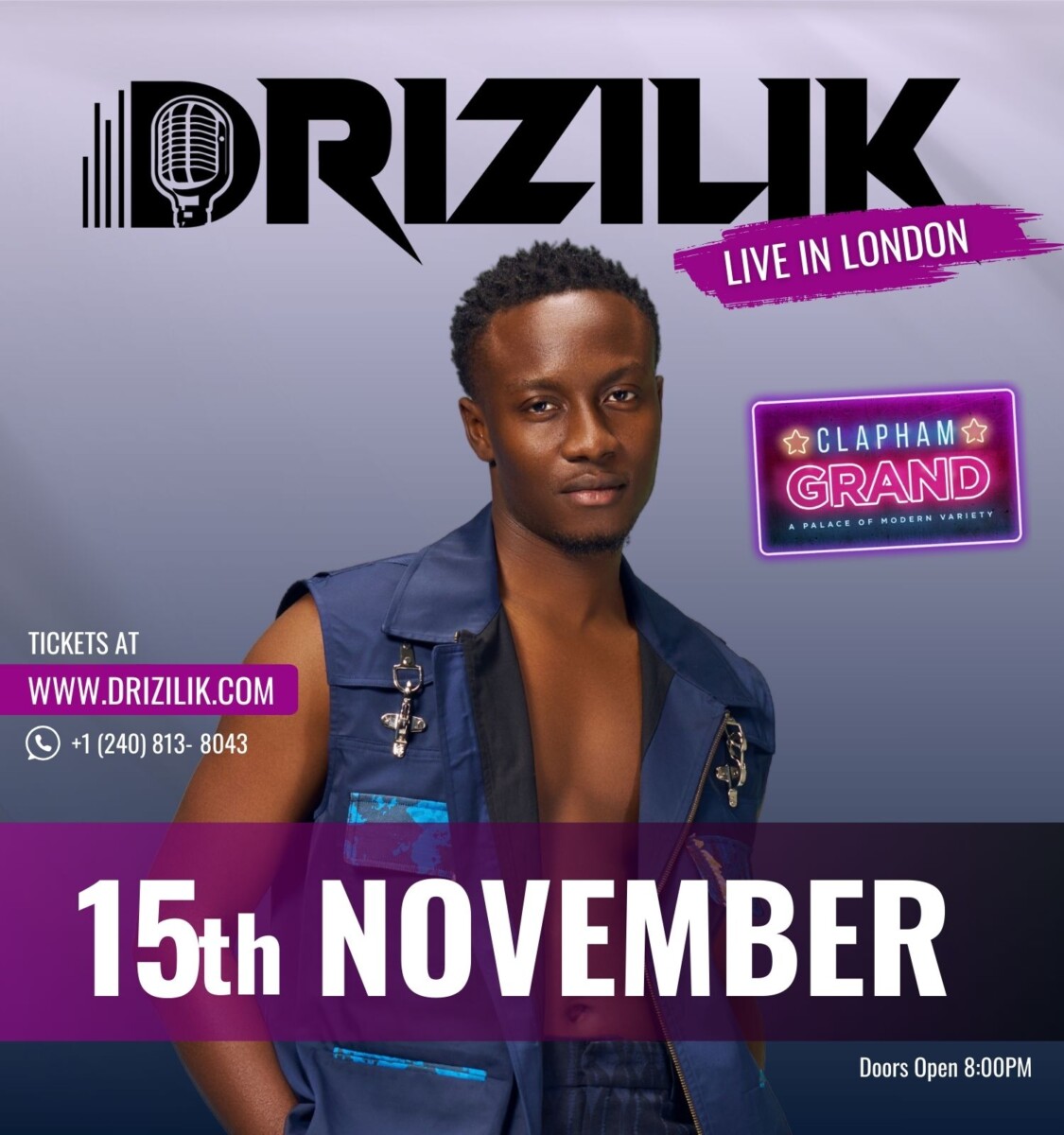 “We’re excited to bring Drizilik’s amazing talent and kriofusion music to London’s Clapham Grand,” said Vickie Remoe.