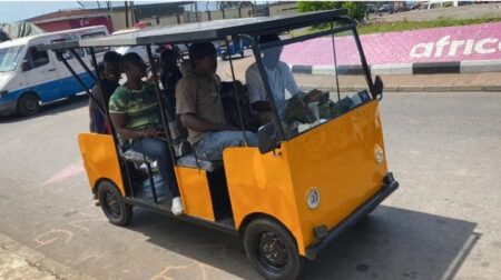 James Samba cruising his 10 seater electric vehicle