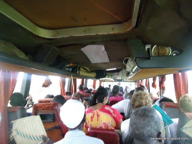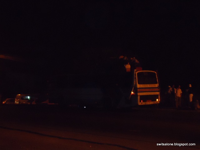 Another 15 minutes later, as people disappeared to dark places to pee, the driver a tall dark skin rather strong looking fellow boarded the bus while his apprentice yelled for everyone to board. We had to wait till everyone else had boarded before we could sit down, so as to not be trampled on.
