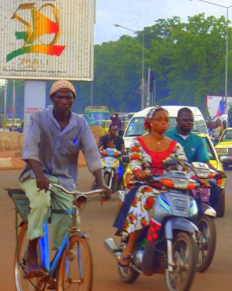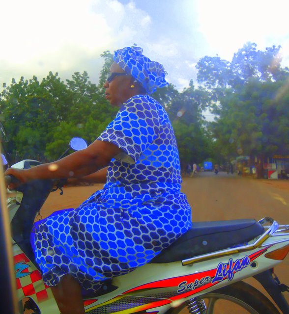 I like to think I know it all, but how is it I didn’t know about this? Women in Bamako fabulously dressed in their African attire, old, and young, slim and plump have mastered the bike. In Sierra Leone a woman on a bicycle would be special, let alone on a bike. Many people in Sierra Leone think it improper for a woman to ride a bicycle.